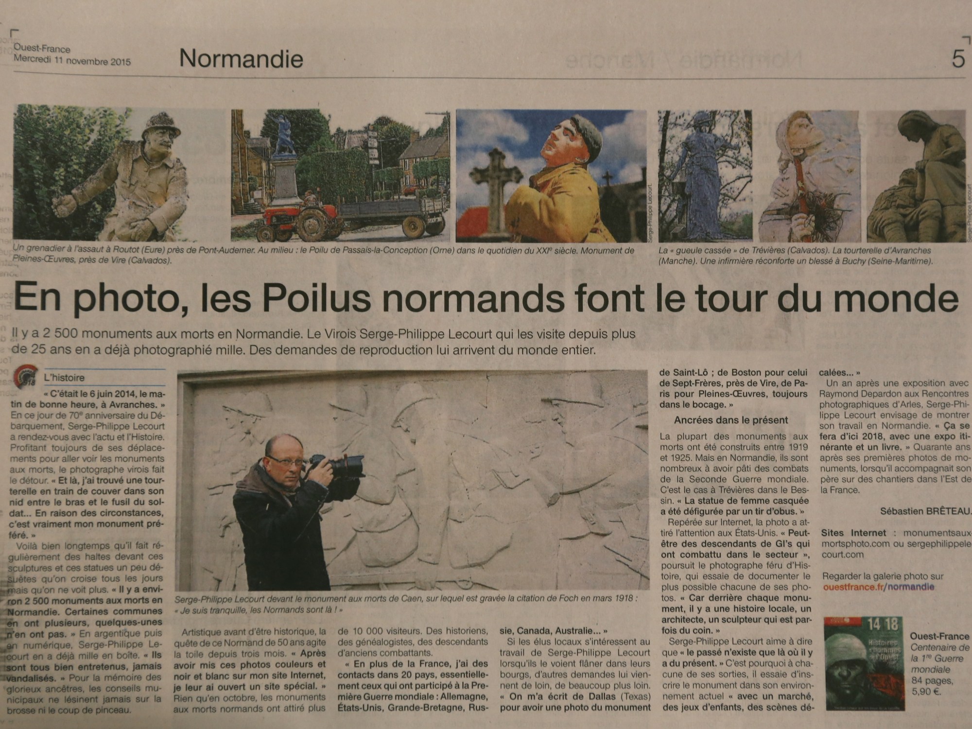 Il y a 2 500 monument aux morts en Normandie. Le Virois Serge Philippe Lecourt qui les visite depuis plus de 25 ans en a déjà photographié mille. Des demandes de reproduction lui arrivent du monde entier.